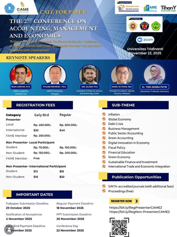 This conference is held by Universitas Tridinanti, South Sumatra, Indonesia, in collaboration with the Goodwood Conference, FAME, and Tihany Sustainable Insight.